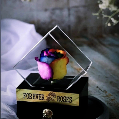 گل رز جاودان هفت رنگ با باکس چوبی صندوقچه جواهرات با ضمانت 7 ساله عالیجناب
