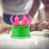 قالب پیراشکی زن طرح گل ، نمونه ای جدید با شمایلی خاص و منحصر به فرد که حتی در زمان عدم استفاده می تواند به عنوان یک ابزار تزیینی داخل آشپزخانه شما مورد استفاده قرار گیرد . شکل ظاهری کالا همانند یک گل با قابلیت باز و بسته شدن طراحی شده ، کافی است قسمت بدنه (ساقه گل) را به سمت پایین بکشید تا غنچه باز شود ، حال می توانید خمیر آماده شده را در میان گلبرگهای باز شده قرار دهید ، سپس مواد مورد نظر خود را داخل آن گذاشته و در نهایت ساقه گل را به سمت بالا بکشید ، دهانه گل بسته خواهد شد ، خمیر با محتویات قرار گرفته درون خود به شکلی زیبا و جالب توجه آماده پخت نهایی می باشد ، به همین سادگی می توانید پیراشکی و شیرینی را به صورت حرفه ای و البته با ابعاد و شکل ظاهری یکسان تهیه کنید .