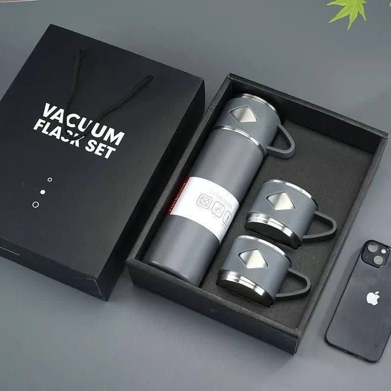 فلاسک دو جداره 3 لیوانه استیل