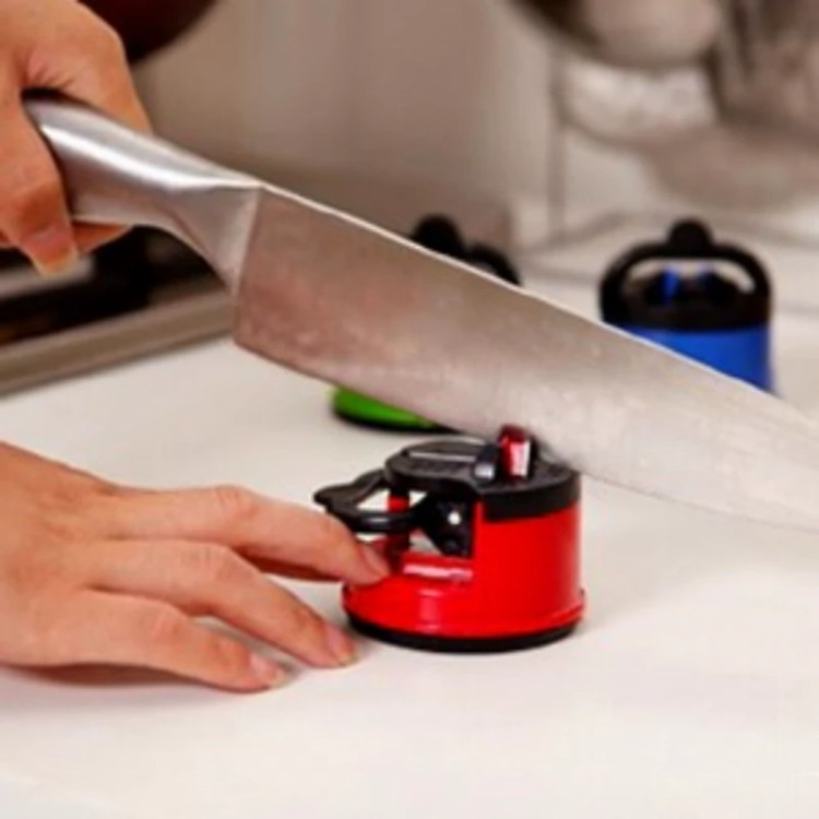 چاقو تیز کن دستی و خانگی با پد مکش جهت ثابت ماندن دستگاه بر روی تمام سطوح، با چاقو تیز کن دستی ظرف چند ثانیه هر نوع چاقو ، قیچی ، کاتر و . . . را تیز تیز کنید بدون آن که از روی سطح میز با دیوار جدا شود. این دستگاه امکان چسبیدن به دیوار را نیز داد به قدری که به کشیدن چاقو هیچ حرکتی نخواهد کرد. یکی از ویژگی های اصلی این چاقو تیز کن دستی می توان به ایمن بودن آن اشاره کرد، تیغه این دستگاه هیچ خطری ندارد و هر کسی به آسانی می تواند از این وسیله استفاده کند.