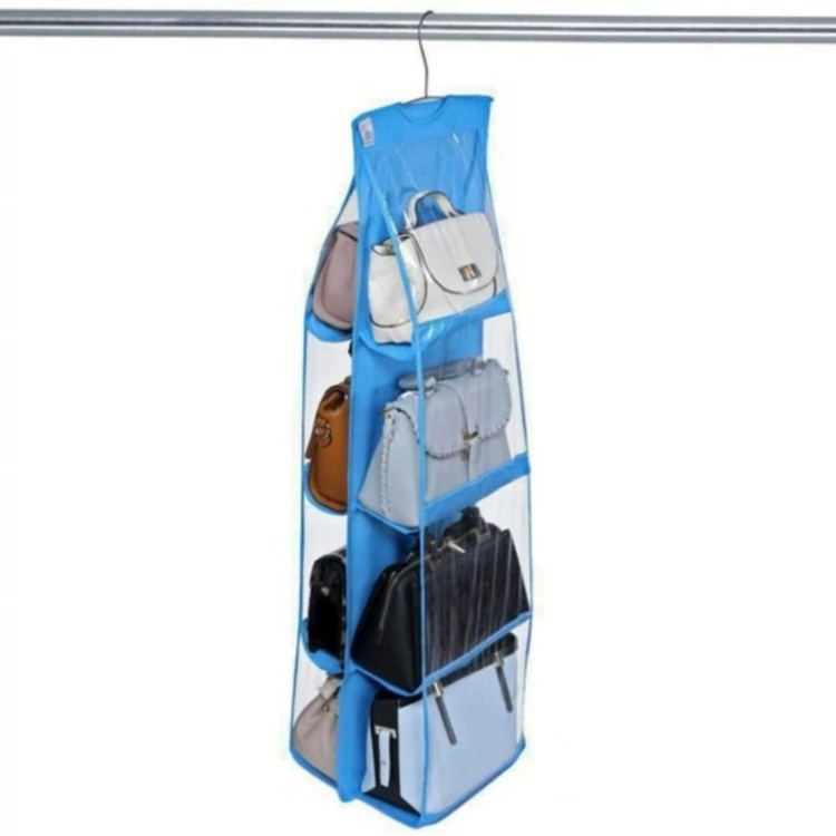آویز کیف داخل کمد چهار طبقه با 8 محفظه برای نگهداری 8 عدد کیف، محصولی نوین و بسیار کاربردی است . این نگهدارنده به صورت دوطرفه همراه با قلاب آویز جهت آویزان کردن داخل کمد و یا پشت درب می باشد . آویز کاور و نگهدارنده کیف امکان استفاده از حداقل فضای ممکن برای نگهداری کیف های شما را فراهم می کند . فضای محفظه های نگهدارنده به گونه ای طراحی شده که علاوه بر کیف از آن می توان جهت نگهداری کفش نیز استفاده نمود . از دیگر ویژگی های این آویز ، جلوگیری از کثیف شدن ، له شدن و خراب شدن کیف و کفش است .