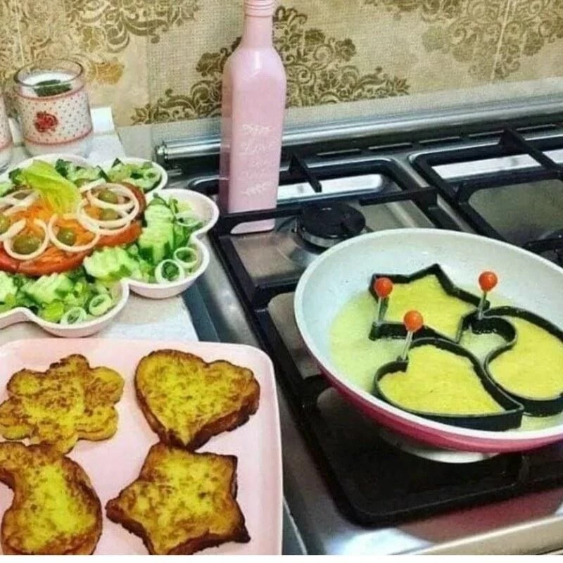 ست چهارتایی قالب پخت کوکو ، کتلت و تخم مرغ تفلون با طرح های قلب ، گل ، دایره و ستاره که به شما کمک می کند سفره ای زیباتر داشته باشید. این قالب ها از جنس تفلون بوده و مواد غذایی به آن نمی چسبد ، همچنین استفاده از آنها بسیار ساده است. هر قالب دارای یک دستگیره پلاستیکی بوده که مانع سوختگی شما به هنگام آشپزی می شود. با استفاده از این قالب ها کوکوها و کتلت های خود را به اشکال زیبا تبدیل نمایید.