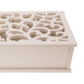 محصولی زیبا و نوین به شکل یک باکس دربدار میباشد. تی بگ از جنس پی وی سی تولید شده که در برابر آب و رطوبت مقاوم است. بخش داخلی محصول دارای 6 خانه با ابعاد یکسان، مناسب جهت نگهداری از انواع چای کیسهای، دمنوش، شکلات و... میباشد که البته این امکان را خواهید داشت تا تعداد خانهها را در صورت نیاز کاهش و ابعاد آنها را افزایش دهید. شکل ظاهری تی بگ به گونهای است که از آن میتوانید به عنوان یک شلف تزئینی و یا حتی یک ظرف پذیرایی برای تنقلات مختلف استفاده نمایید.