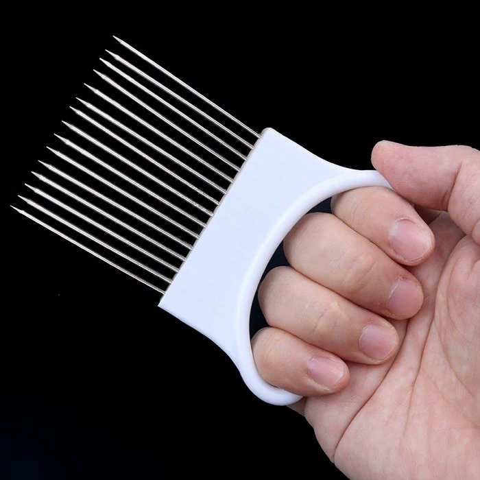 چنگال اسلایسر یک ابزار جدید و بسیار کاربردی در آشپزخانه می باشد. این چنگال به شما کمک می کند هر نوع میوه ، سبزی و صیفی جات را به سرعت و به یک اندازه تکه تکه کنید. فقط کافیست چنگال را درون میوه مورد نظر خود فرو کنید و با چاقوی تیز میوه را با استفاده از فضای خالی تیغه های چنگال به یک اندازه تکه تکه کنید. این وسیله سرعت عمل شما را نیز بالا خواهد برد که این ویژگی در آشپزخانه رستوران ها و هتل ها بسیار مورد اهمیت است.