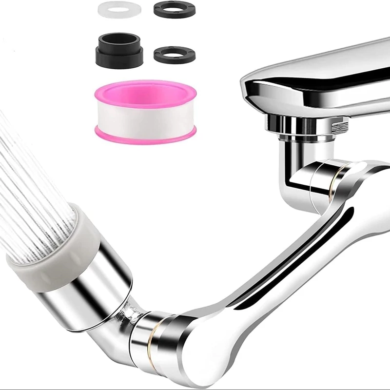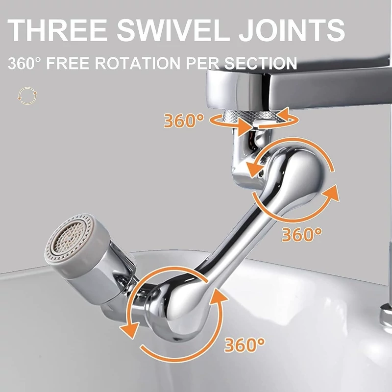 سر شیر آب متحرک مدل بازویی ، محصولی جدید و بسیار کارآمد برای به حداقل رساندن محدودیت تنظیم خروجی شیرهای آب معمولی می باشد . این سر شیر فلزی مقاوم دارای 3 بازو ، مشتمل بر سری اتصال به شیر آب ، سری خروجی و بازوی میانی است که هر کدام قابلیت چرخش 360 درجه را دارند ، بنابراین سر شیر آب چرخان در مجموع امکان چرخش 1080 درجه را خواهد داشت ، خصوصیتی که می تواند به آسانی شرایط لازم برای تنظیم زاویه خروجی آب توسط کاربر ، بسته به نیاز را فراهم نماید . به عبارت ساده تر در هر زاویه ای می توانید خروجی شیر آب را تنظیم نمایید ، پس با حداقل محدودیت روبه رو خواهید بود . خروجی سر شیر آب تلسکوپی ، پوشش پلاستیکی با قابلیت چرخشی را دارد که امکان پاشش آب در دو حالت را فراهم خواهد کرد ، پس به سادگی نصب و با زوایای مختلف در جهات بالا ، پایین ، چپ و راست استفاده کنید .