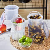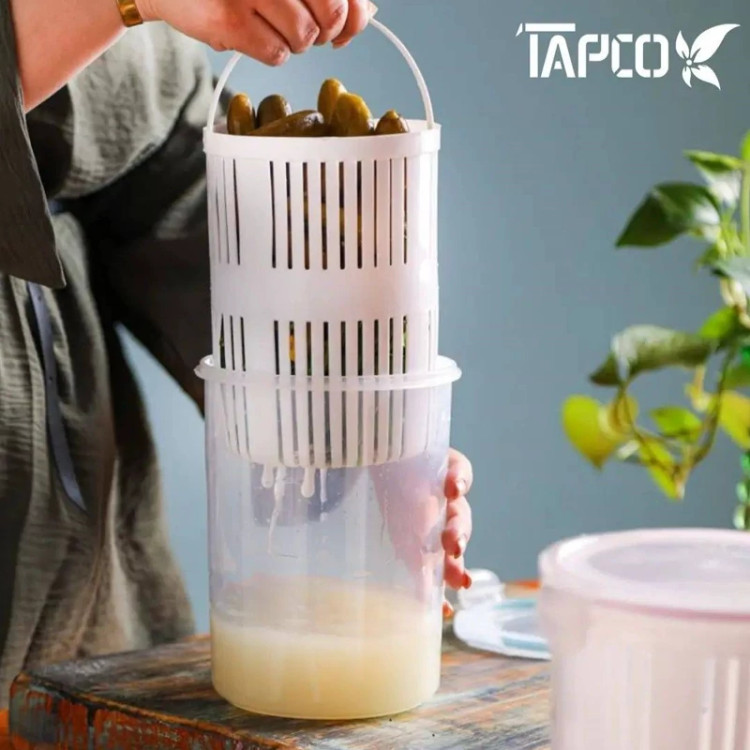 ظرف نگهدارنده ترشیجات ، محصولی جدید از برند تاپکو می باشد که در شاخه تولیدات پلاسکو لوازم آشپزخانه جای گرفته ، نمونه ای منحصر به فرد و در عین حال کاربردی که تولید شده از مواد اولیه مرغوب و بسیار باکیفیت است . این کالا درواقع یک محفظه استوانه ای شکل با درپوش محافظ است که ظرفیتی معادل 1750 میلی لیتر دارد و می توانید از آن در حالت عادی برای نگهداری مواد غذایی مختلف استفاده کنید . اما آنچه وجه تمایز کالا با دیگر نمونه های معمول مشابهش می باشد ، سبدی است که درون محفظه جای داده شده ، یک سبد استوانه ای ، متناسب با فرم ظرف اصلی که تنها قسمت دهانه آن به صورت کامل ، باز است . لبه سبد دستگیره ای تعبیه شده که می توانید با استفاده از آن به سادگی سبد را از داخل محفظه اصلی خارج و یا مجدداً درون آن قرار دهید . وجود این سبد یعنی شما می توانید مواد غذایی را که به همراه خود آب دارند و یا نیازمند نگهداری درون مایع خاصی نظیر سرکه می باشند را به سادگی در موقع نیاز از مایع جدا و به خارج از ظرف منتقل کنید و پس استفاده مجدداً درون مایع بگذارید . با این توصیف به راحتی به محتویات درون مایع تا مقدار آخر دسترسی داشته و می توانید از آن استفاده کنید . از ظرف نگهدارنده ترشی ، علاوه بر ترشی های مختلف می توانید برای نگهداری خیارشور ، پنیر و مواد غذایی مشابه آن ها نیز استفاده کنید . حفظ بهتر ، ماندگاری بیشتر و همچنین دسترسی آسان تر از جمله خصوصیات طرف ترشیجات است.