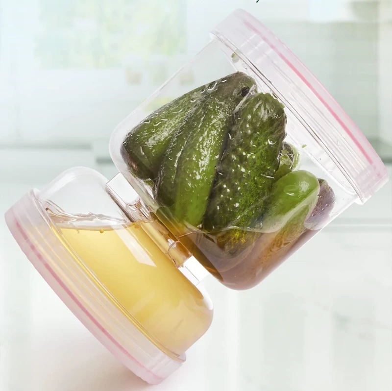 انتقال مایع همراه خیارشور به محفظه کوچکتر برای دسترسی آسان بدون انتقال چربی ، رطوبت و سایر آلودگی ها به مایع نگهدارنده