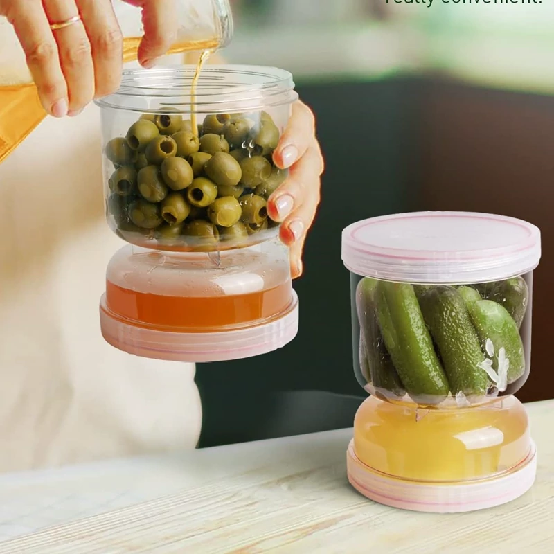 ظرف نگهدارنده خیارشور ، یک ظرف جدید با طراحی منحصر به فرد و البته عملکردی خاص می باشد . این ظرف استوانه ای شکل دارای دو محفظه با ابعاد متفاوت از یکدیگر بوده که بر روی یکدیگر قرار گرفته اند و از طریق یک خروجی در قسمت انتهای خود به یکدیگر متصل شده اند . محفظه بزرگ برای جای دادن خیارشور به همراه مایع نگهدارنده همراه آن طراحی شده ، به طوری که در حالت عادی یک ظرف خیارشور معمولی را خواهید داشت ، اما در موقع نیاز کافیست ظرف را به صورت عکس برگردانید ، به طوری که محفظه بزرگتر بالا و محفظه کوچکتر در پایین قرار گیرد ، در این حالت مایع همراه خیارشور ، از طریق خروجی به داخل محفظه زیرین منتقل می شود و خیارشورها در دسترس شما خواهند بود ، بدون اینکه تماسی میان دست شما با مایع وجود داشته باشد ، بدین ترتیب آلودگی ، انتقال چربی و رطوبت به سرکه و یا مایع همراه مواد غذایی جلوگیری خواهد شد و این یعنی علاوه بر دسترسی سریع و بسیار ساده تر با امکان استفاده تا مقدار پایانی مواد درون محفظه ، ماندگاری بیشتر مواد غذایی . ظرف نگهدارنده زیتون ، از هر دو طرف دارای دهانه با پوشش درب (باز و بسته شدن به صورت چرخشی) بوده و قابل استفاده برای نگهداری مواد غذایی مختلفی نظیر خیارشور ، زیتون ، سیر ، پنیر و انواع ترشیجات می باشد .