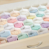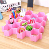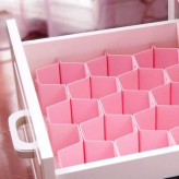 تقسیم کننده کشو لونه زنبوری ، محصولی با طراحی خلاقانه ، نوین و بسیار کاربردی جهت استفاده داخل کشوهای مختلف نظیر کمد ، کابینت و ... می باشد . این تقسیم کننده تولید شده از جنس پلاستیک مقاوم و منعطف است که به سادگی امکان برش زدن جهت سایز کردن متناسب با ابعاد داخل کشو را نیز دارد . تقسیم کننده کشو طرح لونه زنبور دارای 6 خشاب است که به سادگی می توانید آنها را به یکدیگر متصل و در نهایت داخل کشو قرار دهید . ایجاد فضاهای مجزای کوچک برای قرار دادن لوازم و وسایل مختلف به صورت تفکیک شده با نظم و ترتیب داخل کشو مهمترین ویژگی استفاده از تقسیم کننده داخل کشو لانه زنبوری محسوب می شود . علاوه بر این به وجود آمدن طرح لانه زنبور درون کشوی میز ، کمد و یا کابینت شما ، جلوه ای زیبا و جالب توجه را به وجود خواهد آورد . دیواره های تقسیم کننده به شکل ساده همراه با شیارهایی در قسمت بالا و پایین می باشند که با استفاده از برش هایی به شکل قلب تزئین شده اند . شما می توانید با توجه به میزان نیاز ، از این تقسیم کننده استفاده کنید ، در صورت لزوم آن را برش بزنید و یا حتی بشویید .