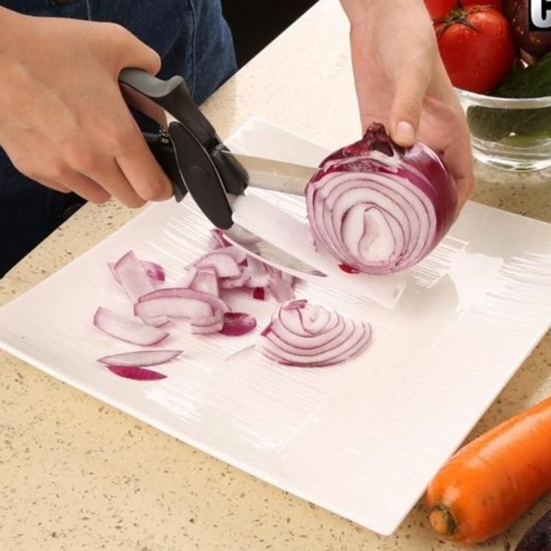 قیچی کاتر ، ابزاری با طراحی کاملاً نوین و بسیار کارآمد ، که نیار هر آشپزخانه است . قیچی کاتر ، درواقع حاصل ادغام دو ابزار تخته گوشت و چاقو های تیز آشپزخانه در یک محصول است . smart cutter ، ظاهری شبیه به یک قیچی دارد ، با این تفاوت که لبه پایینی آن یک تخته کوچک و لبه بالایی آن یک چاقوی بسیار تیز می باشد که به شما امکان می دهد در کترین زمان ممکن میوه ، سبزیجات ، گوشت و ... را خرد و تکه تکه کنید . قیچی آشپزخانه اسمارت کاتر ، نیازی به اشغال فضای زیاد همانند تخته گوشت و چاقو را ندارد و بسیار ایمن است . سهولت در استفاده و صرفه جویی در زمان و انرژی از ویژگی های قیچی کاتر است .