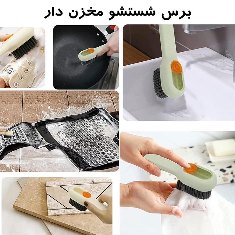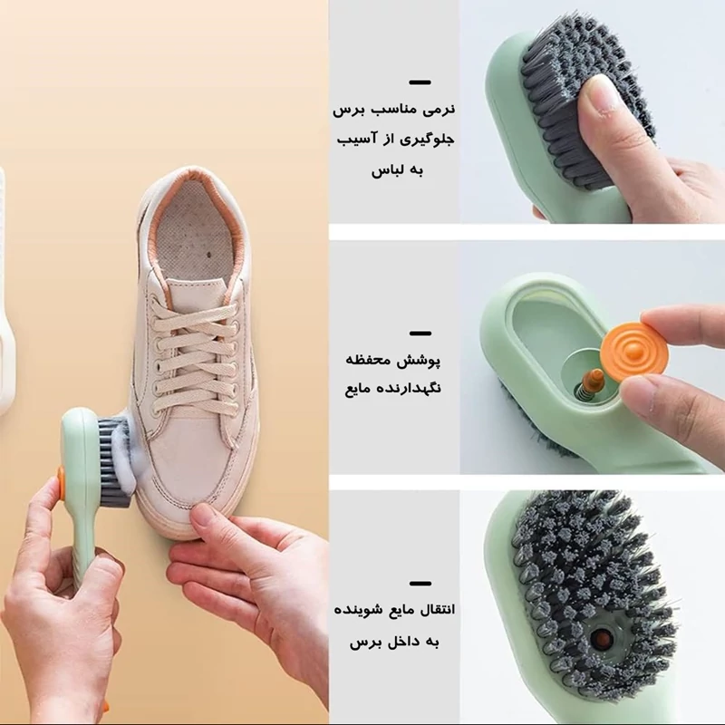 محفظه تعبیه شده در پشت برس برای نگهداری مایع شوینده