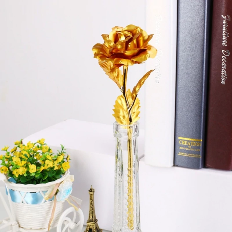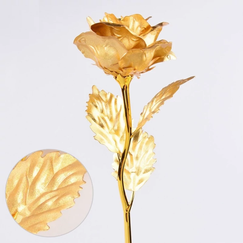 شاخه گل رز طلایی ، محصولی با طراحی بسیاری زیبا و چشم نواز است . با توجه به رنگ طلایی یک دستی که این شاخه گل دارد می توان ترکیب حاصل از طراحی و رنگ را عامل جلوه زیبای آن دانست . گل طلایی ، دارای بسته بندی رسمی و در عین حال شیکی می باشد که آن را به عنوان یک هدیه خاص و متفاوت معرفی نموده است . رنگ شاخه گل ثابت بوده و همراه جعبه نیز یک ساک مخصوص با طراحی ظاهری مشابه با جعبه وجود دارد که می توانید از آن برای حمل گل رز هدیه استفاده نمایید .
