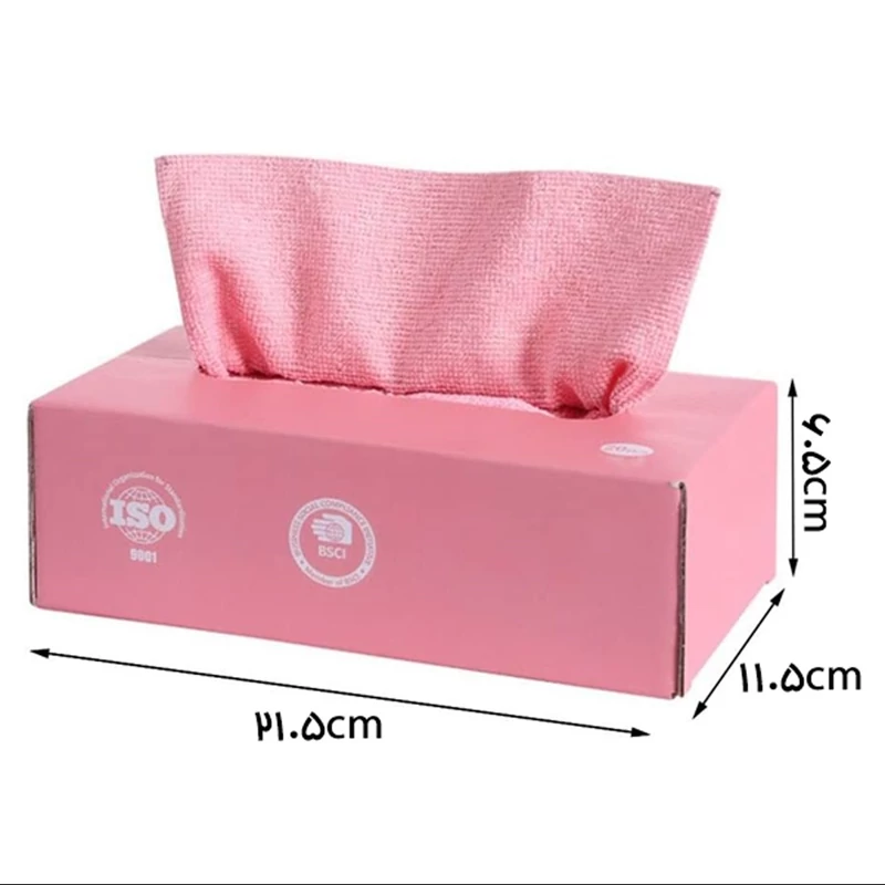 پک دستمال حوله ای 20 عددی ، همان دستمال میکروفایبر با قابلیت جذب بالا و تمیز کنندگی بسیار خوب است اما این بار با بسته بندی جدید و البته تعداد بیشتر . شمایل ظاهری کالا ما را به یاد جعبه های دستمال کاغذی می اندازد اما با محتویات متفاوت ، یک جعبه مکعبی مستطیل شکل که درون خود 20 عدد دستمال میکروفایبر با طول و عرض 20 سانتی متر جای داده که به راحتی همانند دستمال های کاغذی می توانید آنها را از دهانه جعبه بیرون کشیده و استفاده کنید . دستمال چند منظوره آشپزخانه قابلیت شست و شو و استفاده مجدد را دارد ، بنابراین به دفعات می توانید از دستمال ها برای تمیز کردن ظروف ، سطوح و وسایل مختلف استفاده کنید .