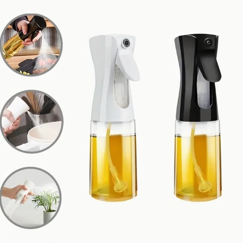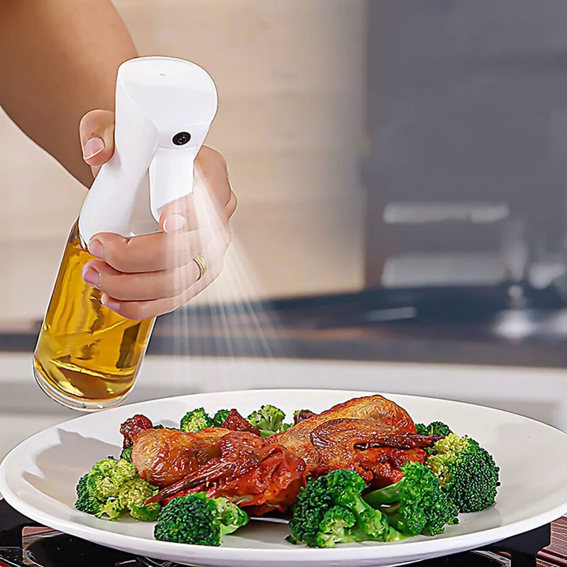 بطری افشانه روغن ، نمونه ای جدید با عملکردی بسیار عالی از گروه کالایی ظروف نگهدارنده روغن مایع می باشد که بدنه ای شیشه ای با ظرفیت تقریبی 220 میلی لیتر به همراه سری اسپری تولید شده از جنس پلاستیک فشرده مقاوم دارد . اسپری روغن دارای نازل تفنگی با قدرت پاشش بالا به صورت افشانه ای می باشد که به شما کمک می کند تا به سادگی روغن را درون ظرف خود به میزان نیاز پاشش و پخش نمایید ، خصوصیتی که مصرف بهینه روغن و در نهایت غذای سالم تر را به همراه خواهد داشت . در انتهای سری لوله انتقال روغن به اسپری که داخل محفظه قرار دارد ، یک صافی قرار گرفته تا مانع از ورود ذرات ناخالصی به داخل اسپری و گرفتگی آن شود . علاوه بر روغن های مایع برای آب ، سرکه ، آبلیمو و یا هر مایع دیگری که نیاز داشته باشید می توانید روی بطری اسپری روغن حساب کنید .