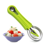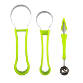 ابزار میوه آرایی ، یک ست ابزار کوچک و بسیار کاربردی جهت استفاده در آشپزخانه است . این محصول شامل چهار ابزار با عنوان قالب زن توپی ، پوست کن ، خالی کننده تخم و برش زن مثلثی می باشد که از ترکیب پلاستیک مقاوم و استیل با کیفیت تولید گردیده . قالب زن توپی مناسب برای جداسازی میوه ها نظیر هندوانه به شکل قطعات کروی شکل کوچک می باشد که علاوه بر زیبایی ظاهری ، سرو و میل کردن آسان تری را به همراه خواهد داشت . پوست کن ، امکان استفاده برای جداسازی پوست میوه هایی نظیر هندوانه ، خربزه و گرمک از میوه اصلی را به شکل ساده و یک دست را محیا می کند ، البته می توانید با جدا کننده تخم نیز ، تخم این قبیل میوه ها که بر روی سطح آنها است را به آسانی جداسازی نمود. اما رکن اصلی و اساسی یک ست میوه آرایی ، چاقوی برش آن است که در این محصول نیز به شکل مثلثی برای برش خاص وجود دارد . قسمت سری چاقوی میوه آرایی به دلیل تیز و باریک تر بودن ، قابل بهره برداری برای حکاکی روی پوست میوه نیز می باشد . بنابراین به سادگی می توانید بر روی پوست میوه اشکال دلخواه خود را طراحی و برش بزنید تا بر زیبایی آن بیافزایید . از ست چهارتایی ابزار میوه آرایی می توانید برای تزیین میوه بدون نیاز به مهارت قبلی در منزل و تنها با استفاده از خلاقیت خود استفاده نمایید .