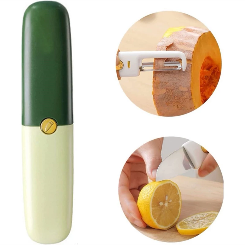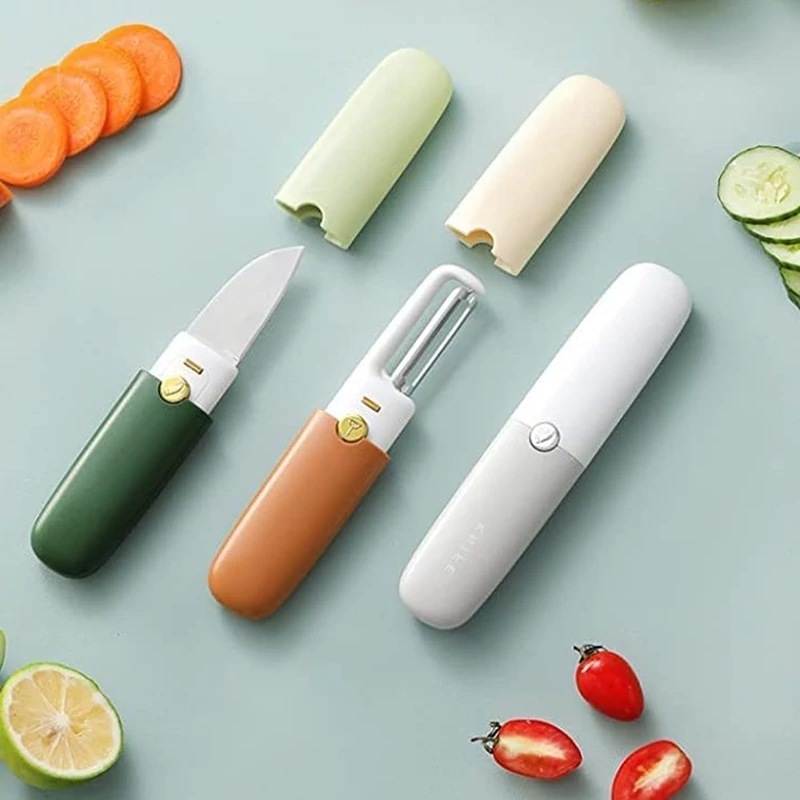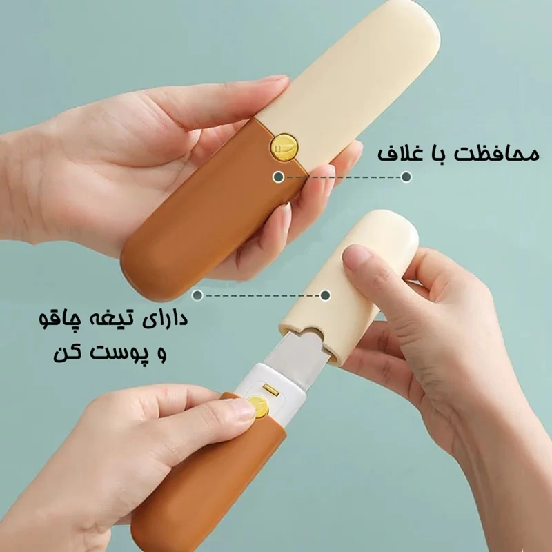 چاقو و پوست کن غلاف دار ، نمونه ای جدید با طراحی متفاوت ، ساده اما زیبا و البته کاربردی می باشد . این کالا دارای بدنه تولید شده از جنس ABS مقاوم با ضخامت مناسب است ، بنابراین به سادگی از تیغه های داخل محفظه به صورت کامل محافظت خواهد کرد . در دو طرف بدنه دو تیغه شامل یک چاقوی کوچک به همراه یک پوست کن طراحی و ایجاد شده که بسته به نیاز می توانید از آنها استفاده کنید ، اما خصوصیتی که در کنار چند کاره بودن کالا جلب توجه می کند ، وجود دو غلاف جدا گانه برای هر یک از تیغه ها است ، به طوری که در موقع استفاده از یک تیغه دیگری با استفاده از غلاف پوشیده شده و درواقع نقش دسته را برای کاربر ایفا می کند ، بنابراین بدون نگرانی در رابطه با آزار دست و دشواری کار به دلیل وجود دو تیغه در دو سر محصول می توانید از آن استفاده کنید . وزن و ابعاد مناسب پوست کن دو طرفه خصوصیت دیگری است که امکان حمل و جابه جایی کالا به ویژه در سفر ، پیک نیک و کمپینگ برای استفاده در زمان نیاز را فراهم آورده ، پس در کنار دیگر ابزار چند کاره می توانید سبک تر از همیشه سفر کنید .