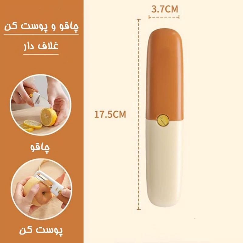 دارای دو تیغه شامل چاقو و پوست کن در دو طرف کالا