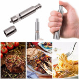 ادویه ساب استیل ، محصولی با طراحی نوین ، فانتزی و در عین حال بسیار زیبا است . این محصول که با عنوان فلفل ساب استیل نیز شناخته می شود ، قابلیت استفاده برای آسیاب کردن فلفل ، نمک ، زعفران و ... را دارد . بدنه فلفل ساب ، از جنس استیل می باشد و دارای کیفیت تولیدی بسیار بالایی است . طراحی محصول به گونه ای است که می توانید به سادگی و تنها با استفاده از یک دست ، ادویه مورد نظر خود را آسیاب کنید و روی غذا بریزید.