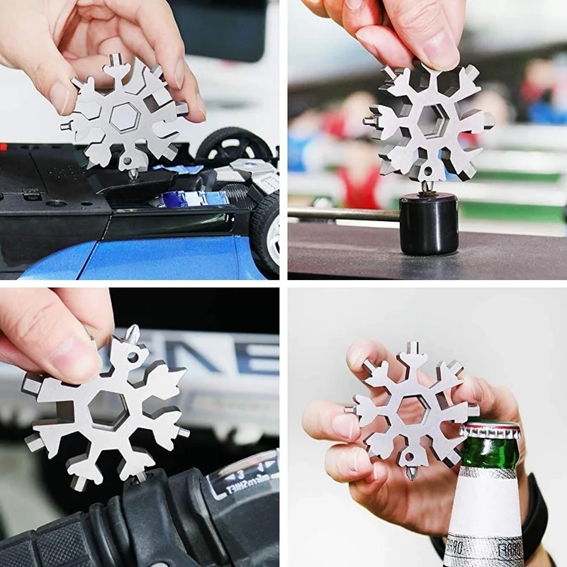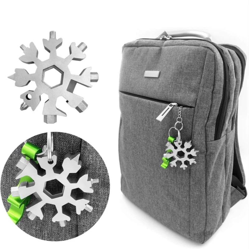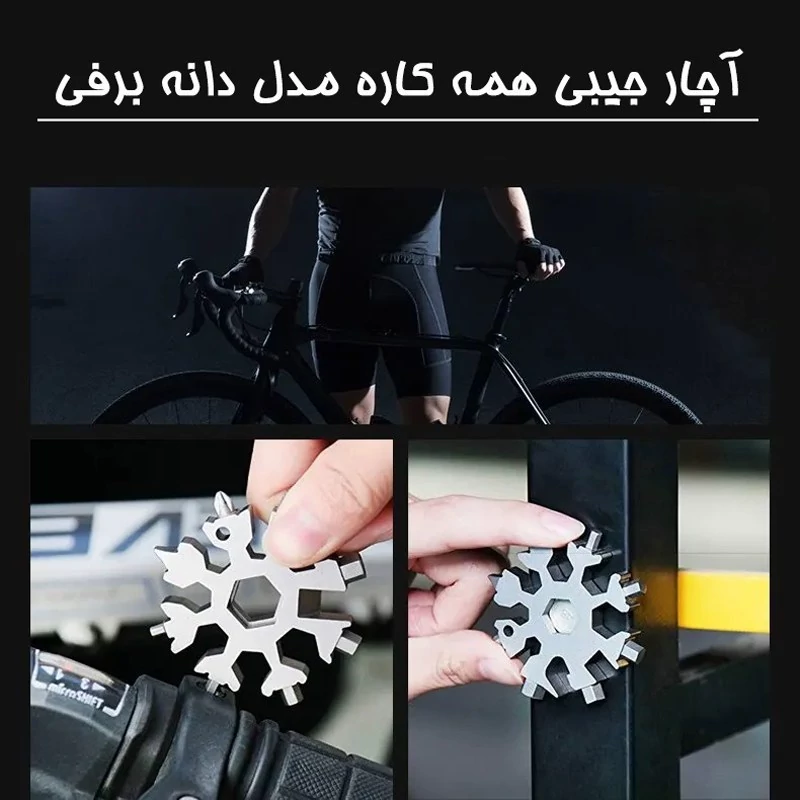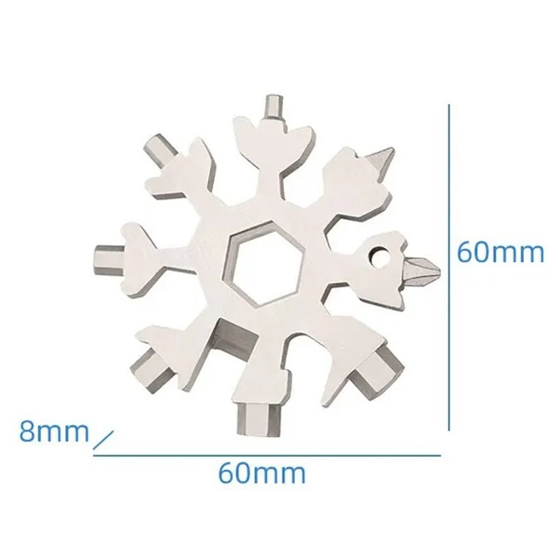 آچار جیبی همه کاره مدل دانه برفی ، یک ابزار فانتزی و بسیار کاربردی با طراحی ظاهری خلاقانه و کم نظیر . آچار چند منظوره تولید شده از جنس فلز مقاوم و باکیفیت می باشد که به شکل یک دانه برف طراحی شده ، خصوصیتی که وجه تمایز اصلی آن با دیگر نمونه های مشابهش به شمار می رود . جلوه ای منحصر به فرد و در عین حال زیبا که در کنار کارایی های متنوع برای باز و بسته کردن پیچ و مهر های مختلف (متناسب با ابعاد) ، امکان استفاده از آن به عنوان یک آویز برای دسته کلید ، کوله و ... را فراهم آورده تا در کنار ظاهر فانتزی ، همواره در دسترس کاربر به هنگام نیاز در شرایط مختلف به ویژه سفر و کمپ باشد ، بدون اینکه نیاز به اشغال فضای تعریف شده و یا از قبل مشخص شده داشته باشد . پس سبک و مجهز سفر کنید .