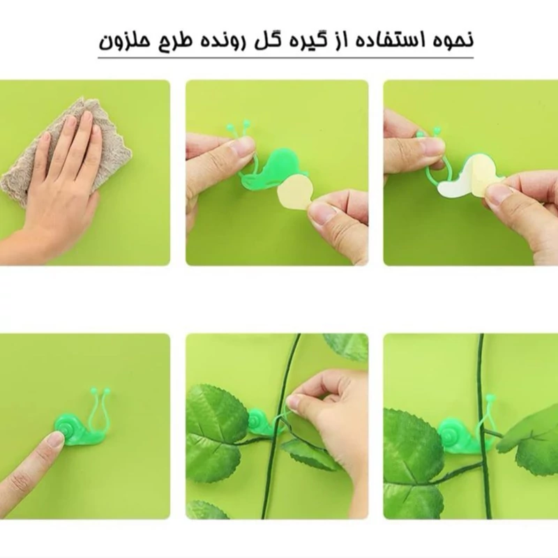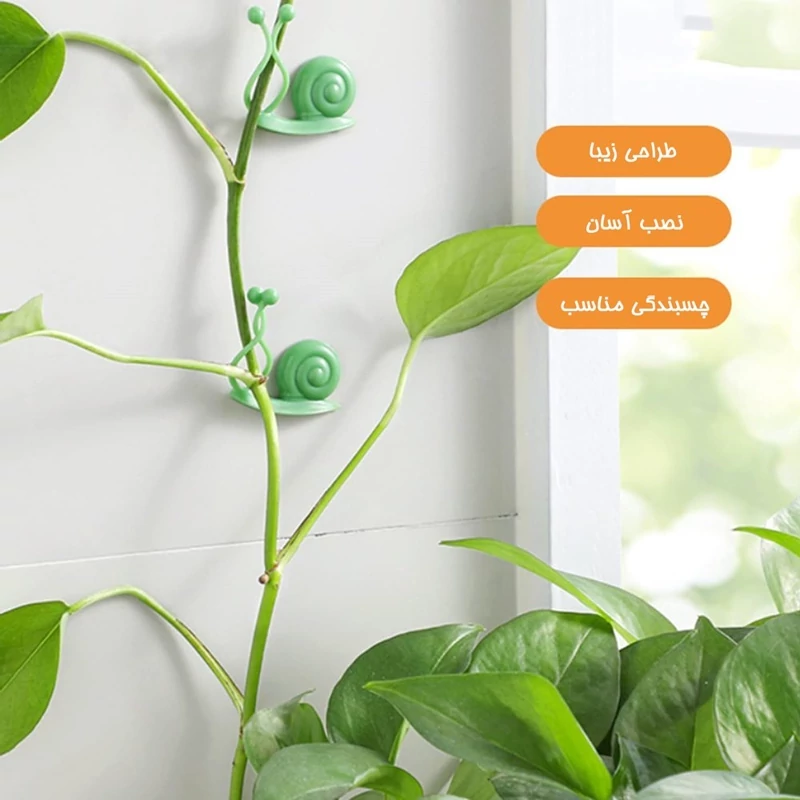 گیره گل رونده طرح حلزون ، نمونه ای جدید از گیره های پتوس با طراحی ظاهری خاص ، فانتزی و جالب توجه که نمی توان بی تفاوت از کنار آن عبور کرد . این کالا شامل 10 گیره گل رونده یا پتوس می باشد که به شکل حلزون سبز رنگ طراحی و از جنس پلاستیک فشرده مقاوم و بسیار باکیفیت تولید شده اند . در پشت هر گیره ، یک لایه چسب قرار داده شده تا بتوانید به سادگی آن را بر روی سطوحی نظیر دیوار نصب و آماده استفاده کنید . ساقه گل های رونده در میان شاخک های حلزون جای گرفته ، سپس شاخک ها به دو هم پیچیده و بسته می شوند تا از میان آنها به صورت ناخواسته جدا نشود ، بدین ترتیب بدون اینکه فشار و یا آسیبی به ساقه گل وارد شود ، از آن نگهداری خواهد کرد و در صورت نیاز می توانید شاخک ها را باز و ساقه را جدا کنید . گیره ساقه گیاه قابل استفاده برای نگهداری منظم از گلهای رونده نظیر پتوس بر روی سطح مورد نظر به دور از آسیب دیدگی های احتمالی و به شکلی منظم با شمایلی زیباتر می باشد .