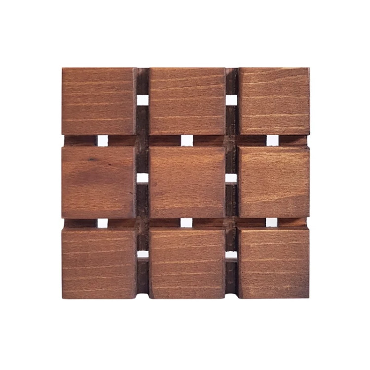 زیر قابلمه ای چوبی چوبلمه سایز کوچک ، نمونه جدید با ابعاد کمتر که علاوه بر ظروف کوچک ، قابلیت استفاده برای ظرف هایی با سایز معمول نظیر تابه و قابلمه را نیز دارد . این محصول تولید شده از جنس چوب مرغوب و باکیفیت می باشد که در دو رنگ قهوه ای تیره و روشن ارائه می شود . کالا به صورت مربعی شکل طراحی شده که درون خود مربع های کوچکتری را جای داده ، ترکیبی که زیبایی خاصی را برای زیر قابلمه ای به وجود آورده . ابعاد و وزن مناسب به همراه قابلیت جابه جایی آسان ، امکان بهره گیری از زیر قابلمه ای در شرایط مختلف برای جای دادن ظروف داغ بر روی سطح را فراهم آورده ، پس به راحتی استفاده و در کمترین فضا از آن نگهداری کنید .
