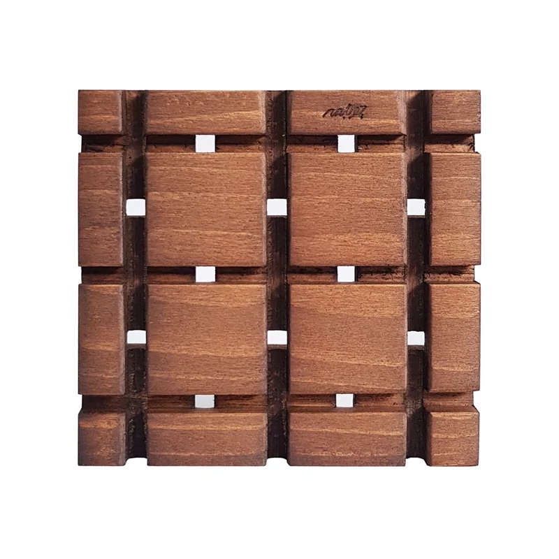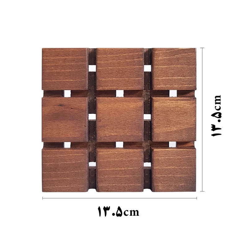 زیر قابلمه ای چوبی چوبلمه سایز کوچک ، نمونه جدید با ابعاد کمتر که علاوه بر ظروف کوچک ، قابلیت استفاده برای ظرف هایی با سایز معمول نظیر تابه و قابلمه را نیز دارد . این محصول تولید شده از جنس چوب مرغوب و باکیفیت می باشد که در دو رنگ قهوه ای تیره و روشن ارائه می شود . کالا به صورت مربعی شکل طراحی شده که درون خود مربع های کوچکتری را جای داده ، ترکیبی که زیبایی خاصی را برای زیر قابلمه ای به وجود آورده . ابعاد و وزن مناسب به همراه قابلیت جابه جایی آسان ، امکان بهره گیری از زیر قابلمه ای در شرایط مختلف برای جای دادن ظروف داغ بر روی سطح را فراهم آورده ، پس به راحتی استفاده و در کمترین فضا از آن نگهداری کنید .