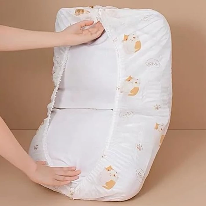 روبالشتی یکبار مصرف ، یک محصول جدید و بسیار کارآمد به ویژه در سفر می باشد . این کالا یک روکش جمع شده برای اشغال کمترین فضای ممکن داخل چمدان ، ساک مسافرتی و یا حتی داخل کیف دستی است که در زمان نیاز می توانید آن را باز و بر روی بالش خود بکشید تا مانع از انتقال آلودگی های احتمالی بالش های متفرقه به مو و پوست سر خود شوید .کش دور روکش بالش مسافرتی باعث می شود تا کاور سطح روی بالش را به صورت کامل پوشش داده و به راحتی از جای خود خارج نشود . طراحی کالا این امکان را فراهم نموده تا علاوه بر بالشت های سایز استاندارد ، از آن بتوانید برای پوشش لوازم و وسایل مختلف داخل منزل نیز بهره ببرید ، به عبارت ساده تر یک کاور برای سطح رویین بالشت که قابلیت استفاده به عنوان پوشش لوازم و وسایل مختلف دیگر متناسب با ابعاد کالا را دارد . کاور بالش یکبار مصرف ارائه شده در بسته بندی 10 عددی مناسب جهت استفاده در سفر ، هتل ، اقامتگاه ، بیمارستان و ... می باشد .