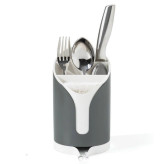 جا قاشقی روی سینک ، از جمله وسایل و لوازم آشپزخانه مدرن با طراحی زیبا و در عین حال کاربردی می باشد . این محصول دارای استند جهت نگهداری انواع قاشق ، چنگال ، کفگیر ، ملاقه ، چاقو و ... به صورت تفکیک شده می باشد . از جمله ویژگی های جا قاشق و چنگال روی سینک می توان به نگهدارنده مخصوص چاقوی آشپزخانه اشاره نمود که ایمنی بیشتر در حین استفاده از محصول را برای شما به وجود می آورد . کفی محفظه دارای شیارهایی جهت تخلیه آب می باشد که درون سینی تعبیه شده در قسمت پایین جمع و از طریق خروجی بر روی سطح سینک تخلیه می شود . کلیه قطعات محصول قابلیت جداسازی از یکدیگر را دارند که امکان شست و شوی آسان را فراهم می آورد . از سویی دیگر قادر خواهید بود در صورت نیاز ، استند تفکیک کننده را از محفظه اصلی جدا کنید و به صورت کامل از فضای داخلی آن بهره ببرید . آبچکان قاشق و چنگال قابل استفاده بر روی سینک ، میز و کابینت می باشد .
