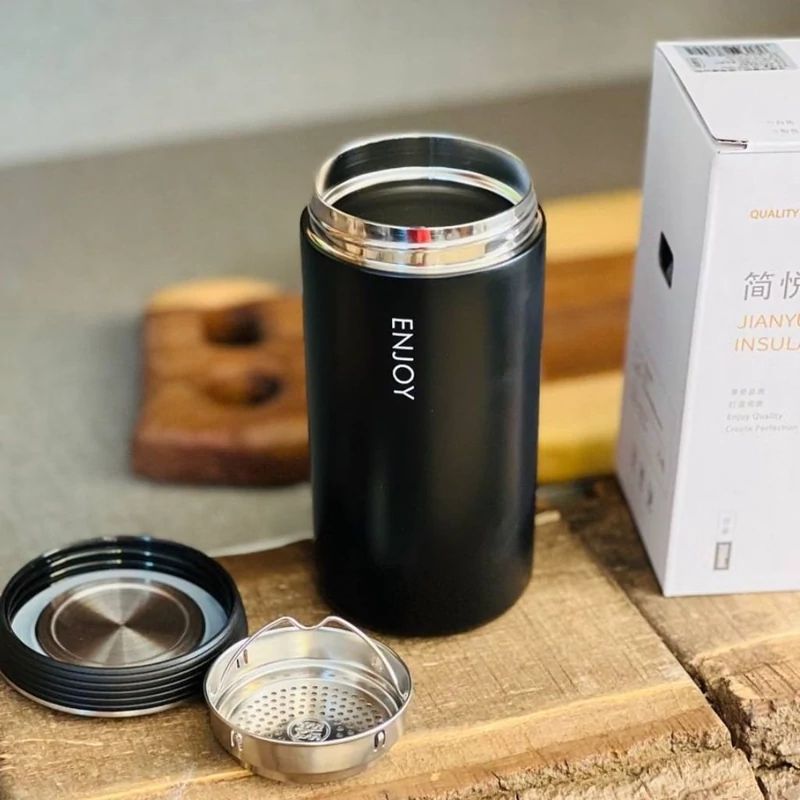ماگ سفری مدل Enjoy ، نمونه ای جدید از یک تراول ماگ با طراحی ظاهری ساده ، کلاسیک و در عین حال بسیار زیبا . این کالا تولید شده از جنس استیل مقاوم و باکیفیت دارای دو جداره داخلی و خارجی برای نگهداری مایعات گرم و سرد با دمای اولیه برای مدت بیشتری می باشد . ظرفیت ماگ داخل استیل اینجوی برابر با 350 میلی لیتر است که دهانه آن توسط یک درب با قابلیت باز و بسته شدن آسان به صورت چرخشی پوشش داده می شود . در زیر درب نیز یک صافی استیل تعبیه شده تا بتوانید از آن بنابر نیاز با توجه به نوع نوشیدنی خود بهره ببرید . صافی دارای دسته مجزا با قابلیت ثابت شدن و البته جدا شدن از ماگ حین نیاز می باشد . سطح زیرین ماگ استیل درب دار لایه ای سیلیکونی تعبیه شده تا لیوان بر روی سطح ثابت قرار گیرد و به سادگی سر نخورد . این کالا ارائه شده در رنگ های متنوع و زیبایی است که از آن برای منزل ، محل کار ، محیط های آموزشی ، سفر ، کمپ و یا هر جای دیگری که نیاز داشته باشید می توان استفاده نمود .
