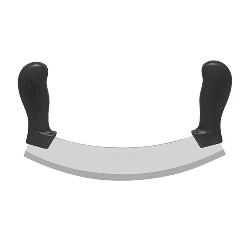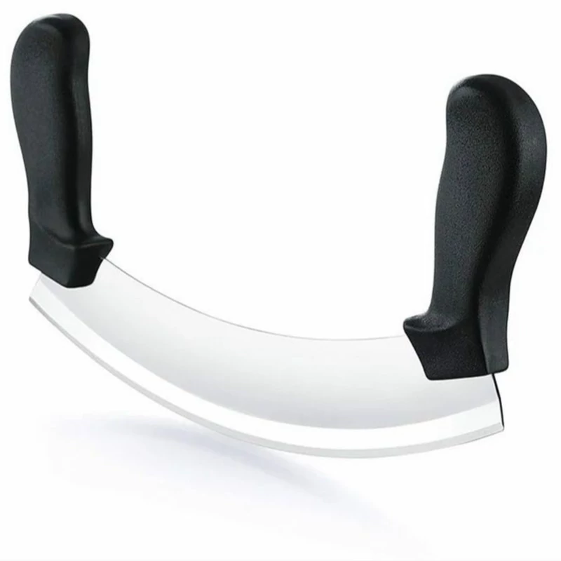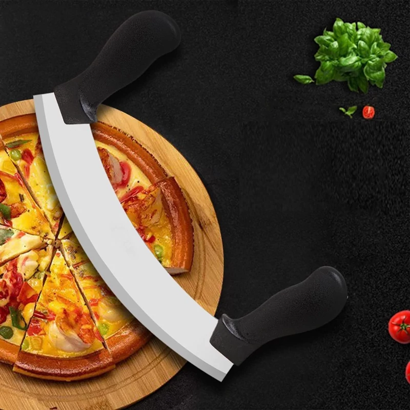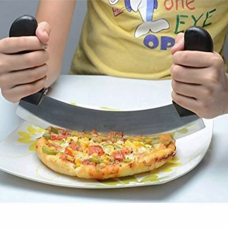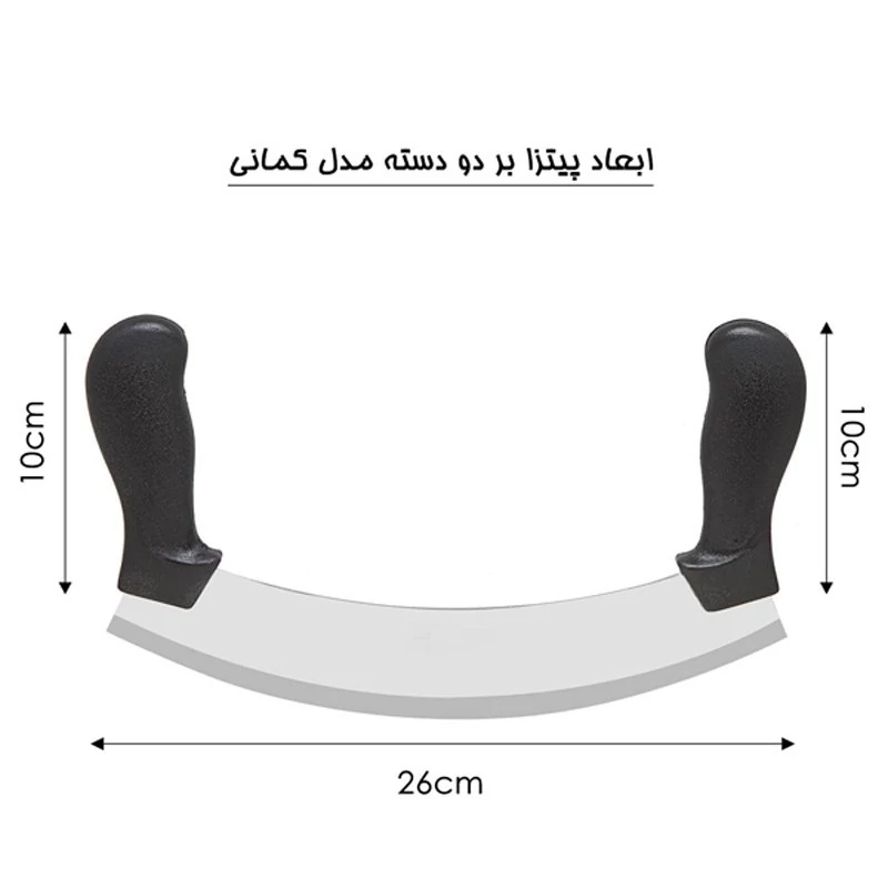 پیتزا بر دو دسته مدل کمانی ، نمونه ای جدید ، کاربردی با مقاومت و کیفیت بسیار خوب می باشد . کاتر پیتزا بر ، دارای تیغه ای از جنس استیل مقاوم است که به شکل هلالی و یا اصطلاحاً قوس دار طراحی شده ، خصوصیتی که روند برش سریع تر و به نسبت ساده تری را برای کاربر ایجاد خواهد کرد ، به عبارت ساده تر ، کافی است پیتزا بر را بر روی لبه پیتزا گذاشته و خط برش را تا انتها بزنید ، بدون اینکه برای این خط برش نیازی به برداشتن و گذاشتن های متوالی وجود داشته باشد . در دو طرف تیغه استیل دو دسته از جنس پلاستیک فشرده تعبیه شده تا تسلط بیشتر کابر بر روی کاتر با صرف انرژی کمتر را برای او هنگام برش زدن پدید آورد ، بنابراین ساده تر از قبل و سریع تر از همیشه میتوانید برش بزنید . از پیتزا بر دو دسته ، علاوه بر پیتزا می توانید برای برش سبزیجات نیز استفاده کنید .
