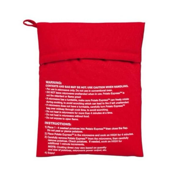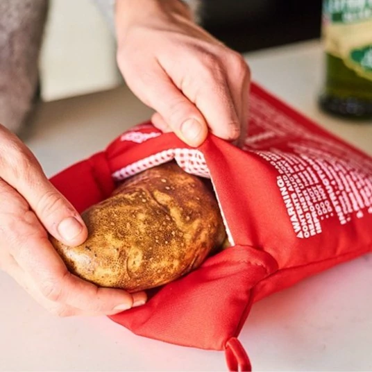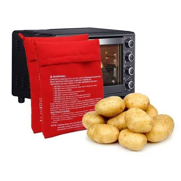 کیسه پخت سیب زمینی اکسپرس از الیاف خاصی تولید شده که سیب زمینی را با سرعت باورنکردنی مغز پخت می کند ، مغز پخت کردن سیب زمینی در مدت کوتاهی کار ساده ای نیست بهترین وسیله برای برای اینکار استفاده از کسیه مخصوص سیب زمینی تنوری میباشد، این کیسه با مواد خاص ساخته شده و میتوان تا 4 سیب زمینی را در آن قرار داد. کافیست فقط 4 دقیقه سیب زمینی را درون کسیه قرار داده و آن را در ماکروویو خود قرار دهید بعد از 4 دقیقه سیب زمینی های شما به خوبی تنوری شده و میتوانید ان را به اشکال مختلف و بخصوص حالت سیب زمینی شکم پر میل نمایید.