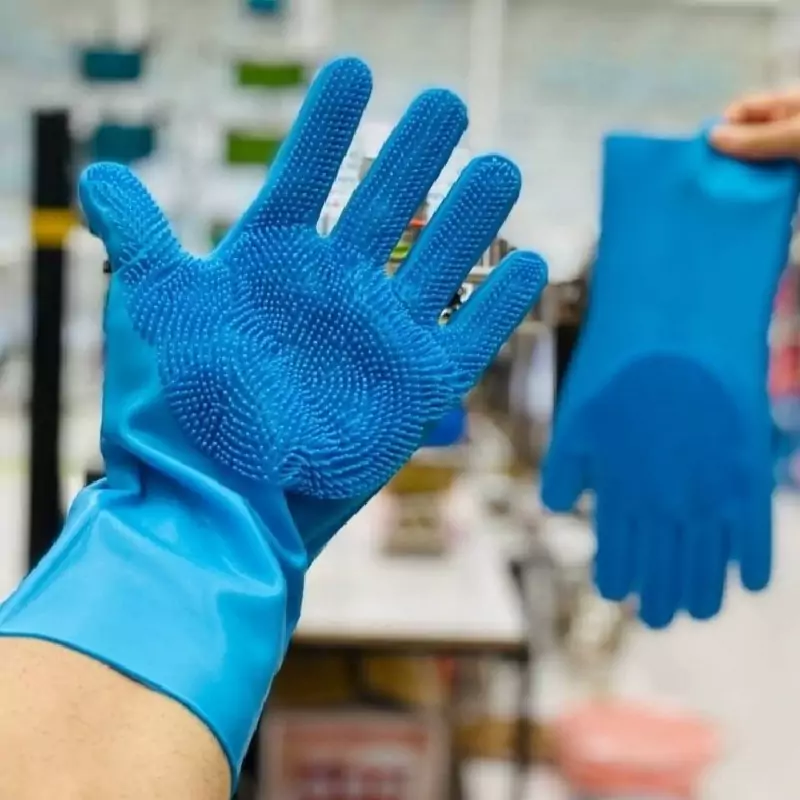 دستکش اسکاچ دار ، محصولی با طراحی خلاقانه و بسیار کاربردی می باشد . این محصول از جنس سیلیکون نرم ، منعطف و بسیار مقاوم تولید شده است . دستکش ظرفشویی اسکاچ دار درواقع تلفیقی از اسکاج و دستکش ظرفشویی برای سهولت در شست و شوی ظروف و همچنین سطوح مختلف می باشد . پرزهای تعبیه شده بر روی سطح دستکش به ابعاد کف دست ، نیاز شما به گرفتن اسکاج درون دست را برطرف می کند و برای شستن ظروف تنها کافیست کف دست خود را بر روی سطح داخلی و خارجی آنها به حرکت درآورید ، این موضوع علاوه بر سهولت در عملکرد ، کیفیت شست و شو و همچنین سرعت کار شما را بسیار بالا می برد . پشت دستکش و دقیقاً قسمتی که بر روی پشت دست شما قرار دارد به دلیل قرار گرفتن دانه های کوچک در کنار هم به شکل سطحی زبردار درآمده که در صورت نیاز می توانید دستکش ها را برعکس به گونه ای که سطح اسکاچی این بار در پشت دست شما قرار گیرد به دست کنید و از آن همانند دستکش های معمولی استفاده کنید ، با این تفاوت که سطح زبر روی آن مانع از سر خوردن ظروف از میان دستان شما خواهد