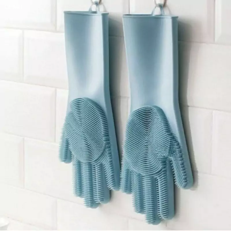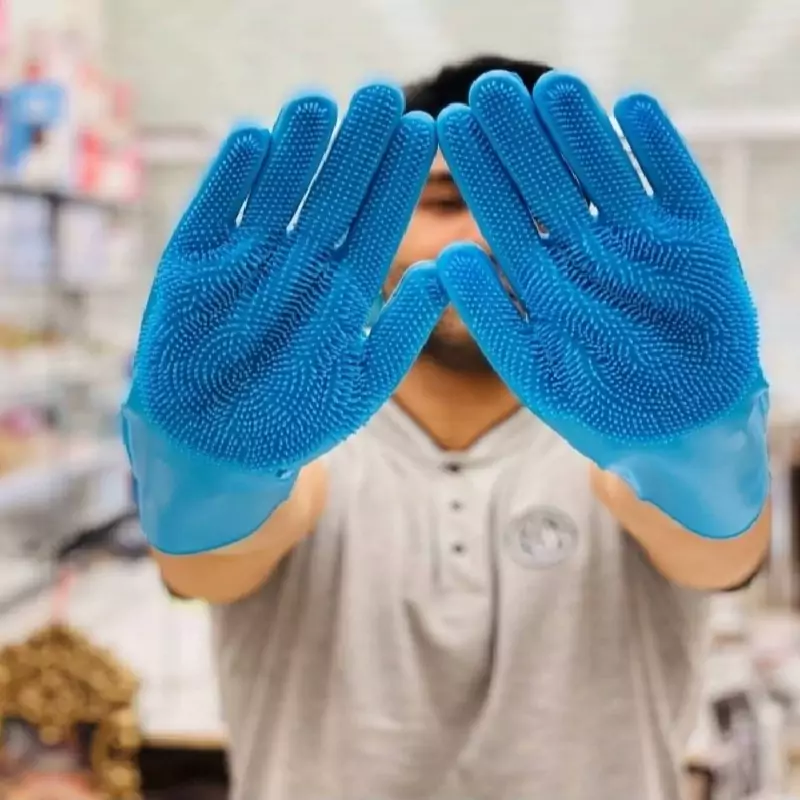 دستکش اسکاچ دار ، محصولی با طراحی خلاقانه و بسیار کاربردی می باشد . این محصول از جنس سیلیکون نرم ، منعطف و بسیار مقاوم تولید شده است . دستکش ظرفشویی اسکاچ دار درواقع تلفیقی از اسکاج و دستکش ظرفشویی برای سهولت در شست و شوی ظروف و همچنین سطوح مختلف می باشد . پرزهای تعبیه شده بر روی سطح دستکش به ابعاد کف دست ، نیاز شما به گرفتن اسکاج درون دست را برطرف می کند و برای شستن ظروف تنها کافیست کف دست خود را بر روی سطح داخلی و خارجی آنها به حرکت درآورید ، این موضوع علاوه بر سهولت در عملکرد ، کیفیت شست و شو و همچنین سرعت کار شما را بسیار بالا می برد . پشت دستکش و دقیقاً قسمتی که بر روی پشت دست شما قرار دارد به دلیل قرار گرفتن دانه های کوچک در کنار هم به شکل سطحی زبردار درآمده که در صورت نیاز می توانید دستکش ها را برعکس به گونه ای که سطح اسکاچی این بار در پشت دست شما قرار گیرد به دست کنید و از آن همانند دستکش های معمولی استفاده کنید ، با این تفاوت که سطح زبر روی آن مانع از سر خوردن ظروف از میان دستان شما خواهد
