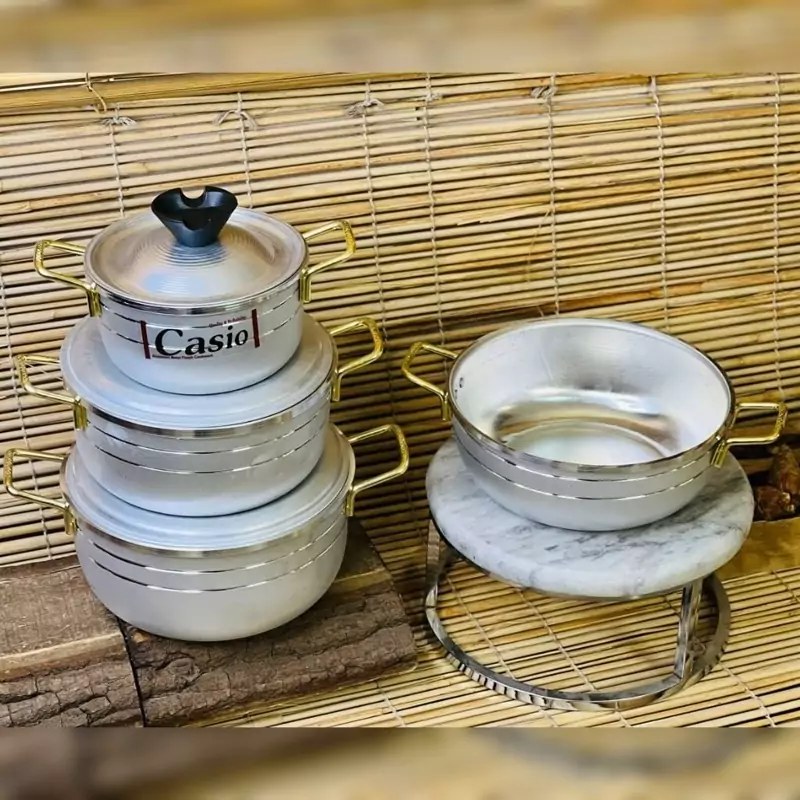 📌سرویس قابلمه کاسیو 3 تایی دسته طلایی به همراه تابه