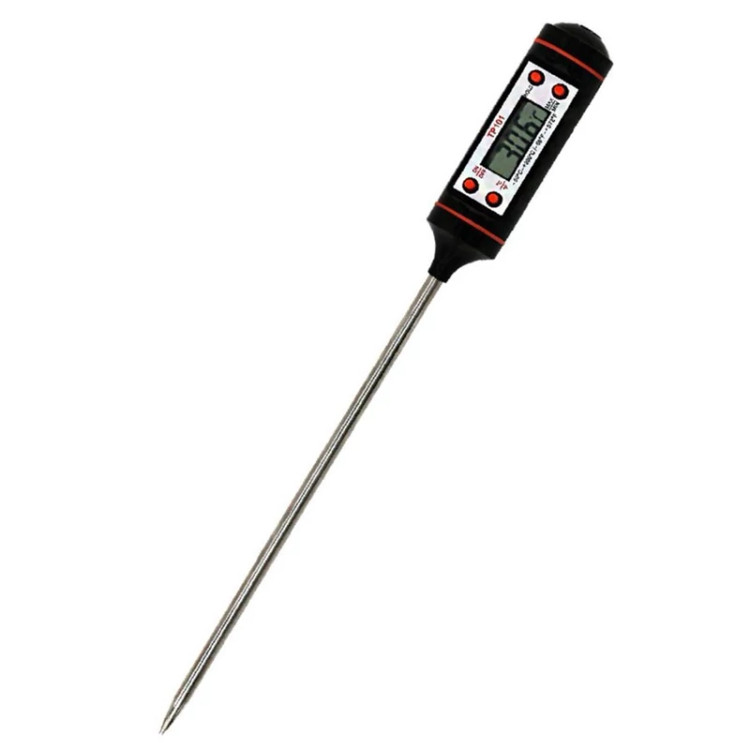 از دماسنج میله ای دیجیتال می توان برای اندازه گیری دما مایعات، غذا، گوشت و غیره در محیط آشپزخانه استفاده کرد. دما سنج میله ای مدل TP101 با وزن 35 گرم و طول میله 15 سانتی متر مجهز به سنسور ضد زنگ و مجهز به دکمه Hold جهت ثابت نگهداشتن دمای اندازه گیری شده است. جنس بدنه از پلاستیک درجه یک از نوع ABS و باتری لیتیومی است