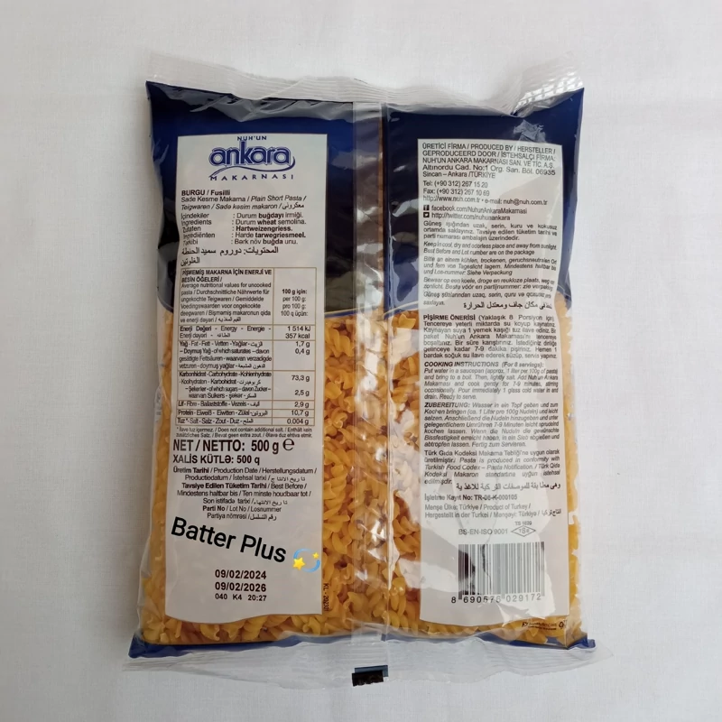 ماکارونی آنکارا Ankara فرمی پیچی وزن 500 گرم ترکیه