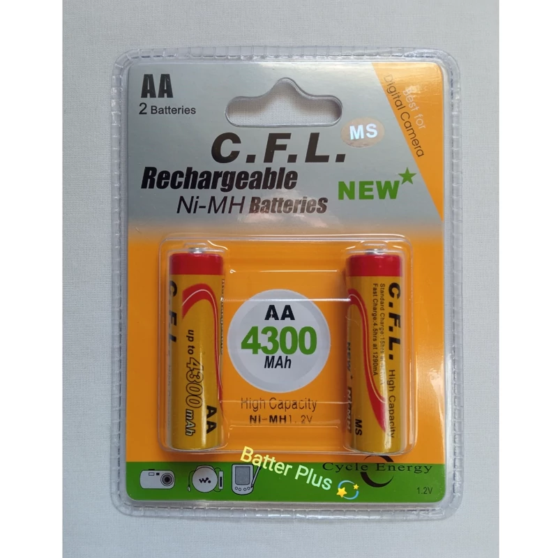 باتری شارژی قلمی دوتایی C.F.L از تکنولوژی نیکل متال هیدرید فلز در ساخت آن استفاده شده است. که امکان شارژ شدن مجدد باتری را فراهم میکند و شما را از دردسرهای تهیه باتری جدید نجات میدهد.