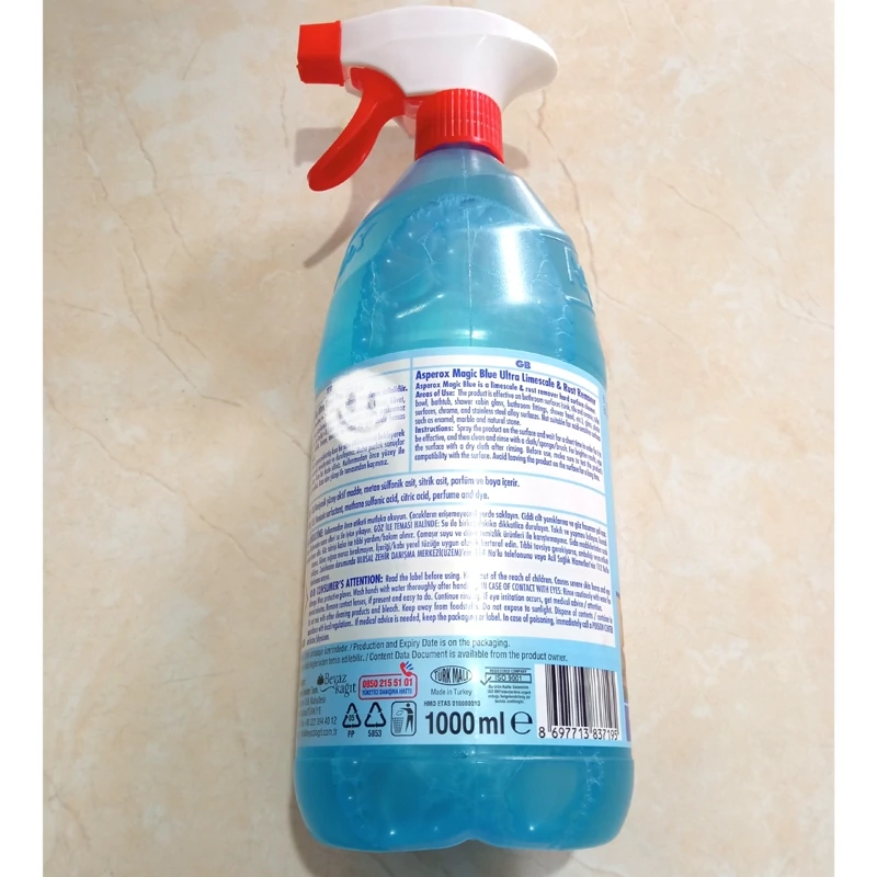 اسپری تمیز کننده سطوح Asperox با فرمولاسیون ویژهای که دارد، بهراحتی رسوبات آهکی شیرآلات، لکههای سطوح فلزی، گچی و سنگی آشپزخانه و سرویس بهداشتی و … را در کسری از ثانیه پاک میکند.