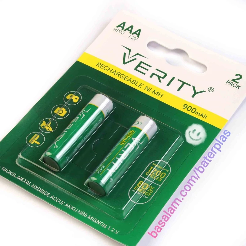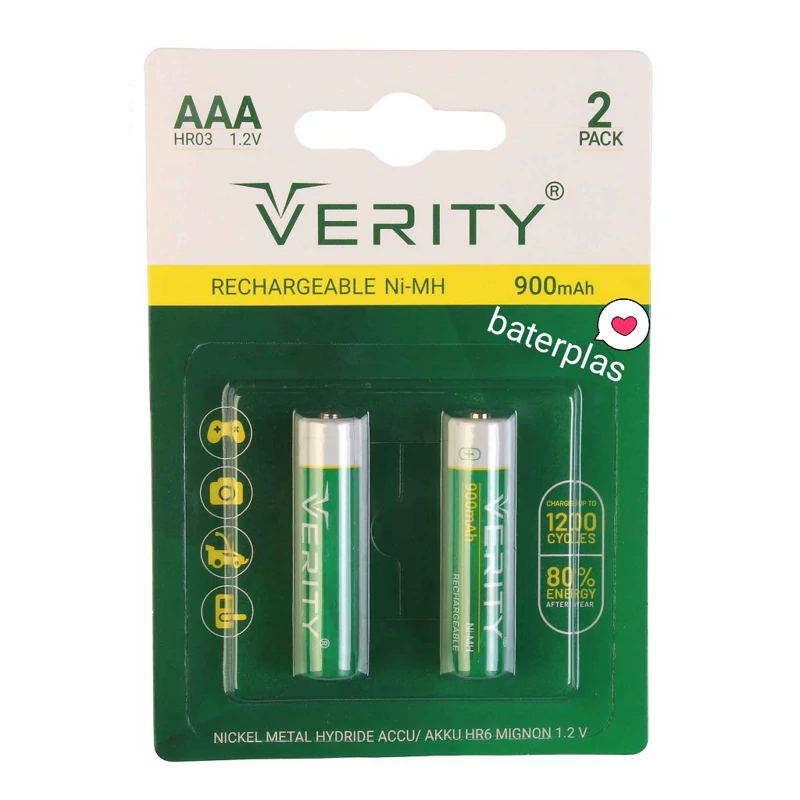 برند verity ، باتری نیم قلمی قابل شارژ وریتی مدل HR03 با ظرفیت 900 میلی آمپر را با کیفیت خوب و قیمتی مناسب تولید کرده که مخصوص تلفن های بیسیم و دستگاه هایی که با باتری نیم قلمی شارژی کار می کنند، می باشد.