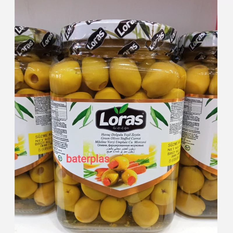 زیتون سبز مغزدار لوراس در دو نوع هویج و سیر 900گرم