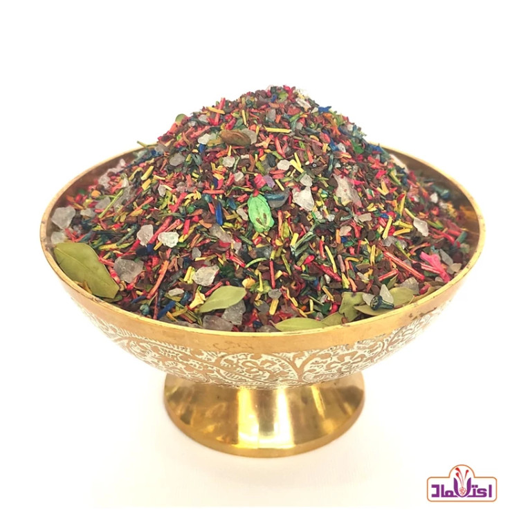 ترکیبات اسپند رنگی: اسپند رنگی حاوی زاج، گلپر، اسپند و… می باشد
