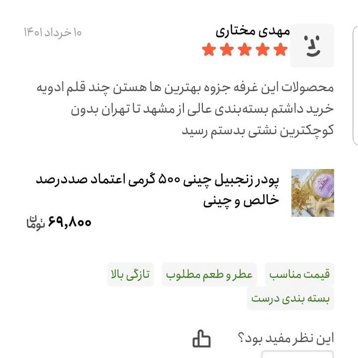 فروشگاه اینترنتی amazonchi / مواد غذایی و سوپر مارکت/ چاشنی و افزودنی ها/ ادویه جات/ ادویههای اصلی/ زنجبیل