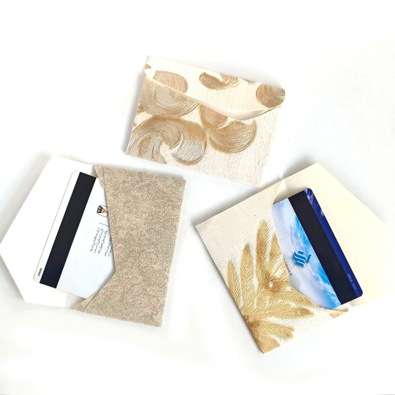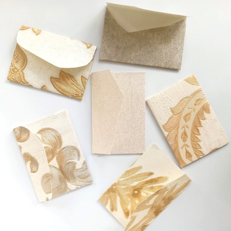 پاکت ها از جنس fabric که برای کاغذی دیواری استفاده میشه تهیه شده که طرح های متنوعی رو با جنس نرم و خاص خودش در اختیار تون میذاره