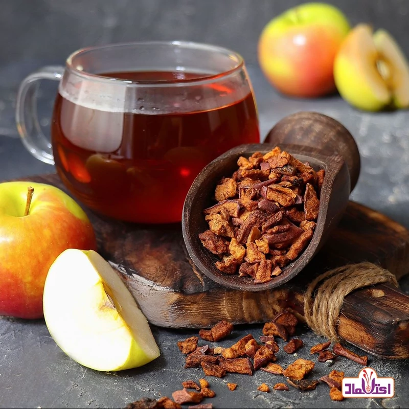 با چای سیب به نوشیدنیهاتون تنوع بدید!\nچای سیب خشک میتونه عطر و طعم دلپذیرتری به چای روزانهتون بده، یا اگه اهل تنوع هستید و به غیر از چای دلتون یه نوشیدنی خفن دیگه میخواد سیب خشک پایهتونه.\nاین دلبر از نظر عطر و طعم یه جورایی خواهر دو قلوی به خشکه، به همون خوشبویی ولی طعمش کمی شیرینتره\nمیتونید خالی دمش کنید، یا به چای و دمنوش و شربتهاتون اضافهش کنید و از عطر و طعمش لذت ببرید.\nحتما هم تو ظرف دربسته و جای خشک و خنک ازش نگهداری کنید.