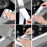 برچسب دور سینک نقره ای در برابر آب مقاوم است ، خصوصیتی که امکان استفاده از آن برای درزگیری دور سینک را فراهم نموده . فرم پذیری چسب امکان پوشش قسمت های زاویه دار نظیر درز مابین زمین و دیوار و مواردی مشابه آن را خود فراهم آورده . چسبندگی خوب نوار چسب دور توالت فرنگی و امکان برش متناسب با نیاز را به دیگر خصوصیات آن بیافزایید . طراحی ظاهری ساده و تنوع رنگ نقره ای کالا تناسب ظاهری سینک و حاشه دور ان را حفظ کرده و می توان از آن علاوه بر دور سینک ، دور اجاق گاز ، شیارهای مابین دیوار و سطح ، سرویس فرنگی با زمین و یا هر جای دیگری که نیاز داشته باشید ، استفاده کنید .