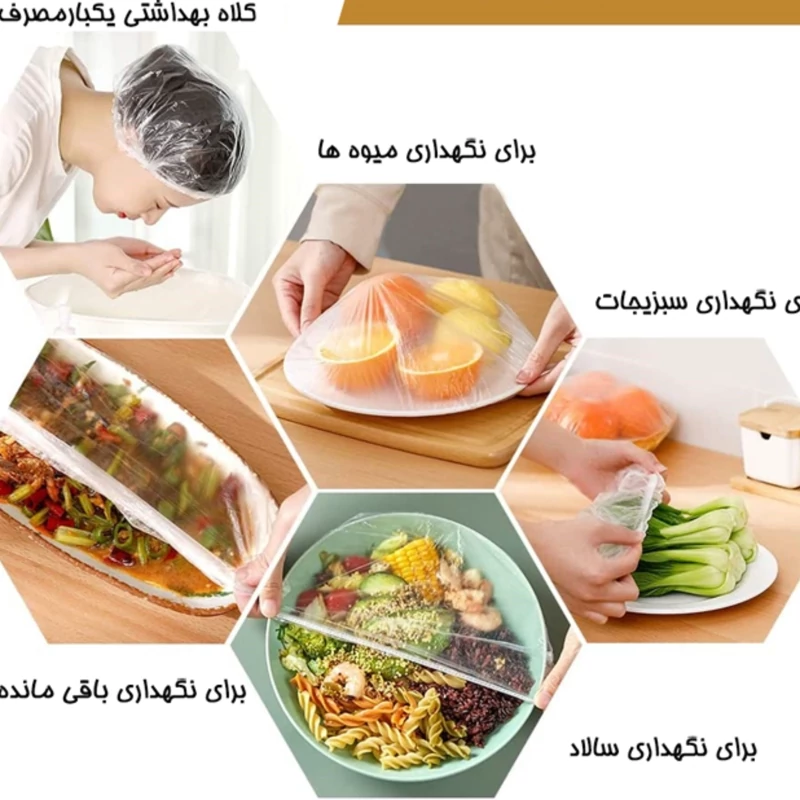 کاور پلاستیکی غذا ، محصولی جدید و کاملاً مورد نیاز برای استفاده در آشپزخانه و یا حتی محیط های مختلف دیگر می باشد . این کالا از جنس پلاستیک تولید شده و در بسته بندی 100عددی ارائه گردیده ، وجه تمایز کاور با دیگر پلاستیک های ساده را می توان کششی بودن دهانه آن عنوان کرد که سبب پوشش کامل ظرف در هنگام استفاده خواهد شد ، بدون اینکه به صورت ناخواسته باز و یا از حالت خود خارج شود . بنابراین همواره پوششی کامل برای ظرف حاوی مواد غذایی در برابر غبار ، آلودگی ، تماس حشرات و ... خواهد بود . داخل یخچال ، کابینت ، روی میز ، درون آشپزخانه ، سبد پیک نیک ، خودرو و یا هر جای دیگری که نیاز داشته باشید می توانید از آن استفاده کنید . کاور پلاستیکی به دلیل نوع طراحی و همچنین ابعاد مناسب خود ، کمترین فضای ممکن را اشغال کرده ، بنابراین به سادگی می توان آن را به همراه داشت تا در صورت نیاز قابل دسترسی باشد . علاوه بر ظروف غذا از این محصول می توانید برای پوشش موی سر در آرایشگاه ها ، کفش ها و ... نیز استفاده کنید .