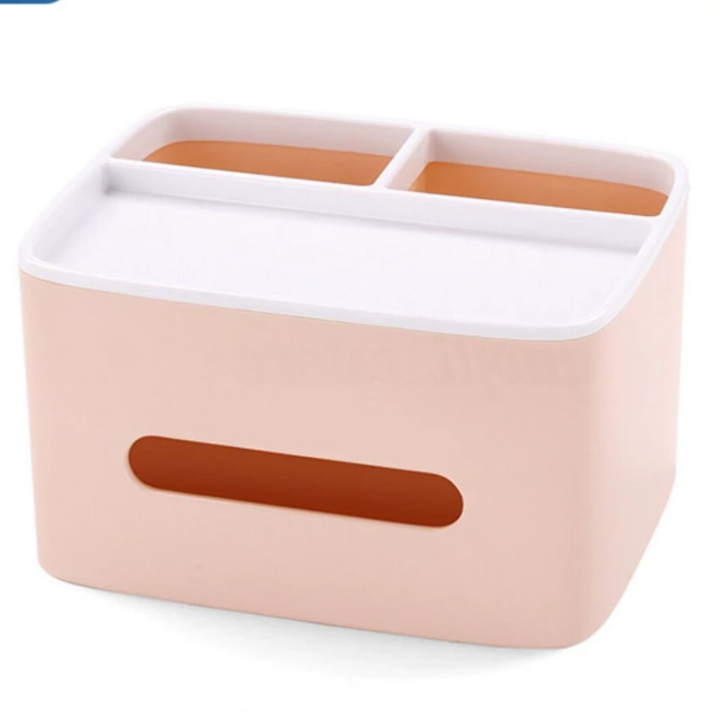 جعبه دستمال کاغذی چند منظوره ، محصولی جدید و زیبا از نوع رومیزی ، همراه با عملکردی کاربردی است . این جعبه از جنس پلاستیک مقاوم و با کیفیت تولید شده که امکان استفاده از آن را در شرایط مختلف از جمله رطوبت بالا محیا نموده . باکس دستمال کاغذی چند منظوره ، شامل چهار فضا در ابعاد مختلف می باشد که یکی از آنها محفظه بسته درب داری است که مخصوص نگهداری دستمال کاغذی طراحی شده است . در جلوی باکس نیز خروجی دستمال تعبیه شده تا بتوانید بدون نیاز به باز و بسته کردن درب و به سادگی در صورت نیاز ، به دستمال کاغذی دسترسی داشته باشید . درب جادستمال کاغذی نیز بر روی خود فضایی دیواره دار با ارتفاع کم برای قرار دادن لوازم و وسایل مختلف مانند موبایل دارد . در پشت جعبه دستمال کاغذی فانتزی دو محفظه دیگر در کنار هم وجود دارد که بسته به نیاز می توان برای جای دادن لوازم مختلف همانند کنترل ها ، لوازم تحریر و ... بهره برد . این محصول در رنگ صورتی روشن ارائه می شود که می توان علاوه بر دستمال کاغذی ، برای نگهداری لوازم و وسایل مختلف روی میز کار ، میز تحریر ، میز آرایش ، آشپزخانه ، سرویس بهداشتی و ... استفاده نمود .