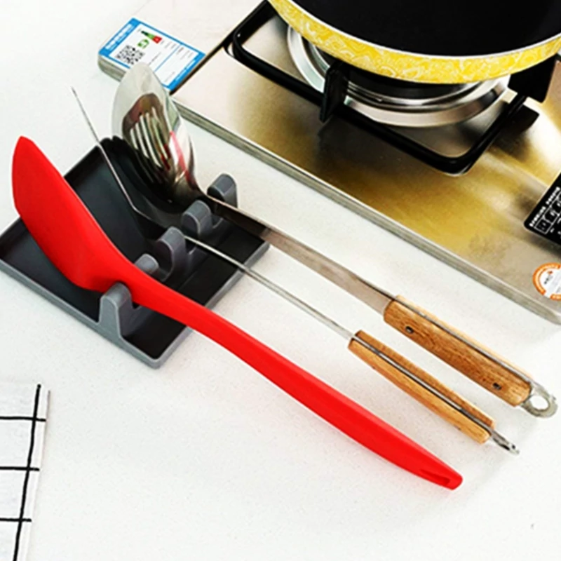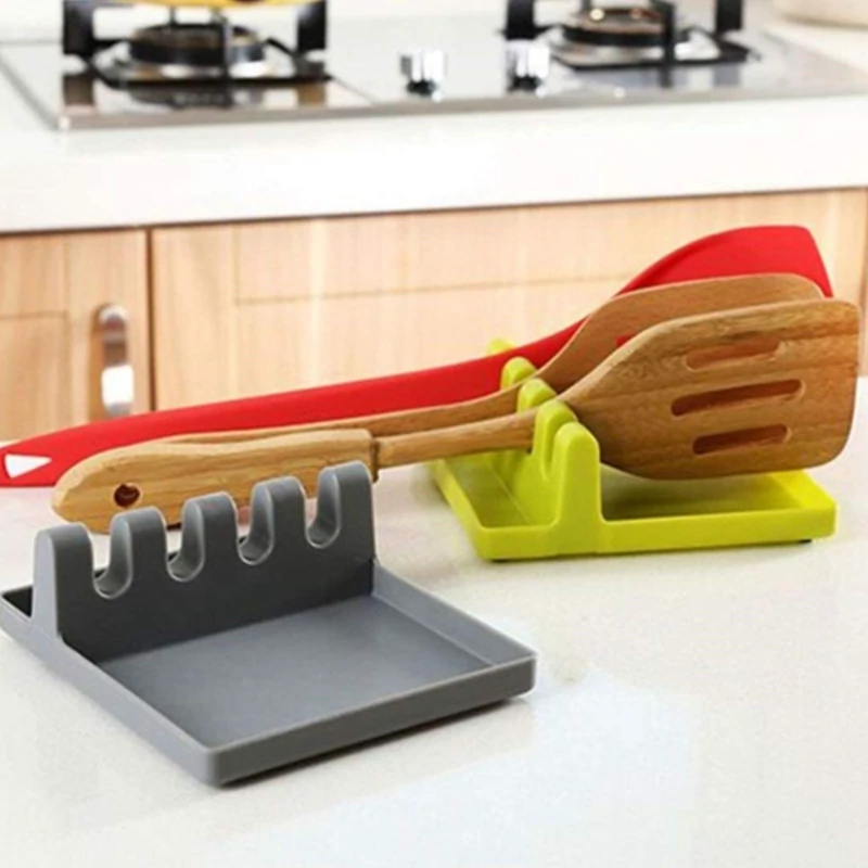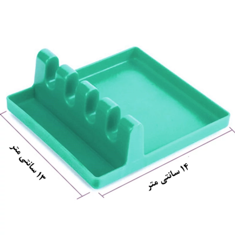 استند دوکاره زیر قاشقی و درب قابلمه ، محصولی با طراحی خلاقانه ، مدرن و کاربردی جهت استفاده کنار انواع اجاق گاز می باشد . این استند از جنس پلاستیک مقاوم و با کیفیت تولید شده و قابلیت استفاده به شکل های مختلف را دارد . استند کفگیر و ملاقه متشکل از یک کفی است که بر روی خود یک استند با چهار شیار دارد ، از شیارها می توان برای قراردادن قاشق ، کفگیر و ملاقه استفاده نمود . وجود کفی که اطراف آن را لبه ای با ارتفاع کم در بر گرفته ، در زیر شیارها مانع از ریختن مواد و یا مایع غذا از طریق قاشق و کفگیر بر روی سطح می شود . از سویی دیگر می توان کفگیر و ملاقه را بر روی کفی به صورت مجزا قرار داد . علاوه بر استند کفگیر و ملاقه ، از این محصول می توان به عنوان یک نگهدارنده درب قابلمه برای درب های کوچک نیز در صورت نیاز استفاده نمود . استند جا قاشقی به گونه ای بر روی سطح کفی قرار گرفته که از یک طرف با لبه دور آن فاصله اندکی دارد ، فاصله ای که مناسب برای قرارگیری درب قابلمه به صورت ایستاده می باشد . وجود زیر قاشقی ، کنار گاز یا حتی روی کابینت مانع از کثیف شدن سطح زیرین یا آلوده شدن قاشق و کفگیر می شود و از سویی دیگر دسترسی سریع تر به آنها در موقع نیاز را میسر می کند . جا قاشقی کنار گاز در رنگ های متنوع و زیبا ارائه و از جمله لوازم آشپزخانه مدرن محسوب می شود
