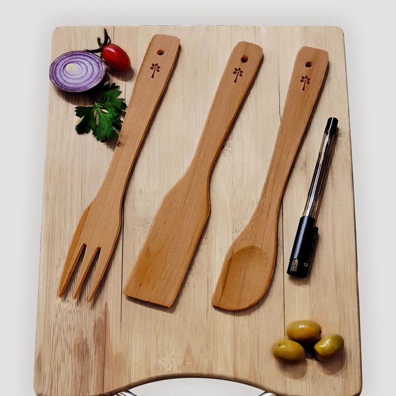 ست کفگیر ملاقه چوبی راش بسته 3 عددی