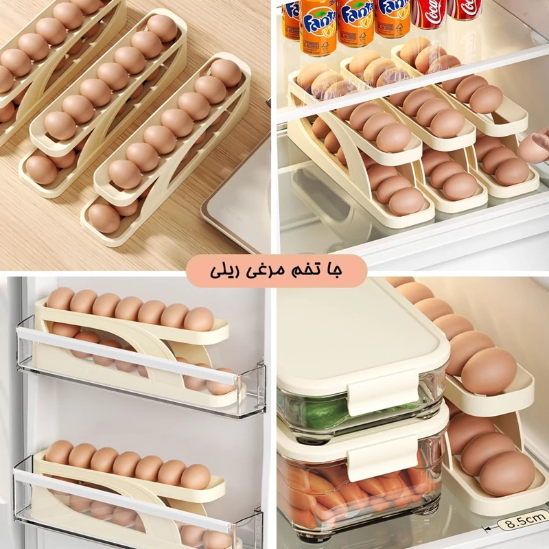محصولی جدید ، با طراحی ظاهری ساده ، اما زیبا و کاربردی که بدون شک می تواند به اغلب ما برای نگهداری بهتر و البته دسترسی ساده تر به تخم مرغ ها کمک بسیاری کند . اولین ویژگی این کالا طراحی آن به صورت دو طبقه و البته باریک می باشد ، بنابراین فضای کمی را داخل طبقات یخچال و یا حتی روی کابینت اشغال می کند . نحوه قرارگیری تخم مرغ ها درون نگهدارنده تخم مرغ ریلی به صورت ردیفی و پشت سر هم است به طوری که تخم مرغ ها به پهلو قرار گیرند تا بتوانند به راحتی بر روی سطح حرکت کنند . طبقه دوم استند دارای مقداری شیب به سمت عقب می باشد ، قسمتی که شیاری برای عبور تخم مرغ و انتقال آن به طبقه اول تعبیه شده ، بدین ترتیب هر بار که شما تخم مرغی را از طبقه اول بر می دارید ، مابقی تخم مرغ ها در طبقه اول به سمت جلو و در طبقه دوم در جهت خلاف حرکت می کنند تا فضای خالی ایجاد شده را پر و به راحتی در دسترس قرار گیرند . داخل طبقات یخچال ، روی کابینت ، کنار گاز و یا هر جای دیگری که نیاز دارید می توانید از این جا تخم مرغی دو طبقه برای نگهداری از تخم مرغ ها به صورت منظم استفاده کنید .